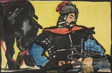 Отошел Гэсэр от места схватки и отдыхает,