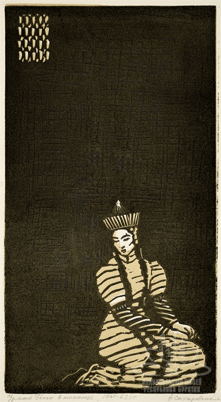 Подписи под изображением: «Урмай-Гохон в темнице, 1961-63 гг. А. Сахаровская»