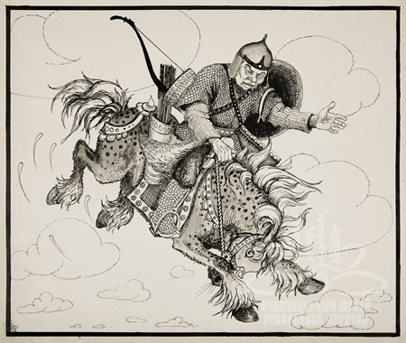 Литература: Гэсэр. Бурятский народный героический эпос. Перевод В.А. Солоухина. - Улан-Удэ: Бурят. Кн. Изд-во, 1986. – Т. 1. С. 225