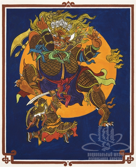 Подписи под изображением: «Шенхоров Ч.Б. Война Гэсэра с Лобсоголдоем. 1993 г.»