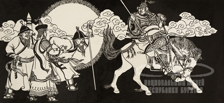 Подписи под изображением: «Шенхоров Ч.Б. Глава IV. Проводы Гэсэра. 1993 г.»