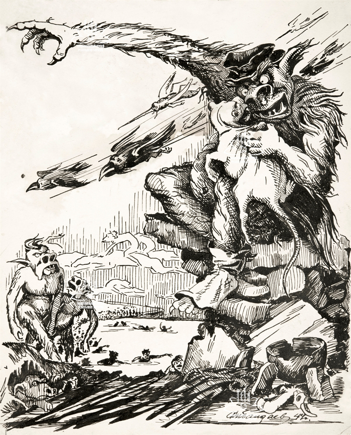 Техника: Бумага, тушь, перо